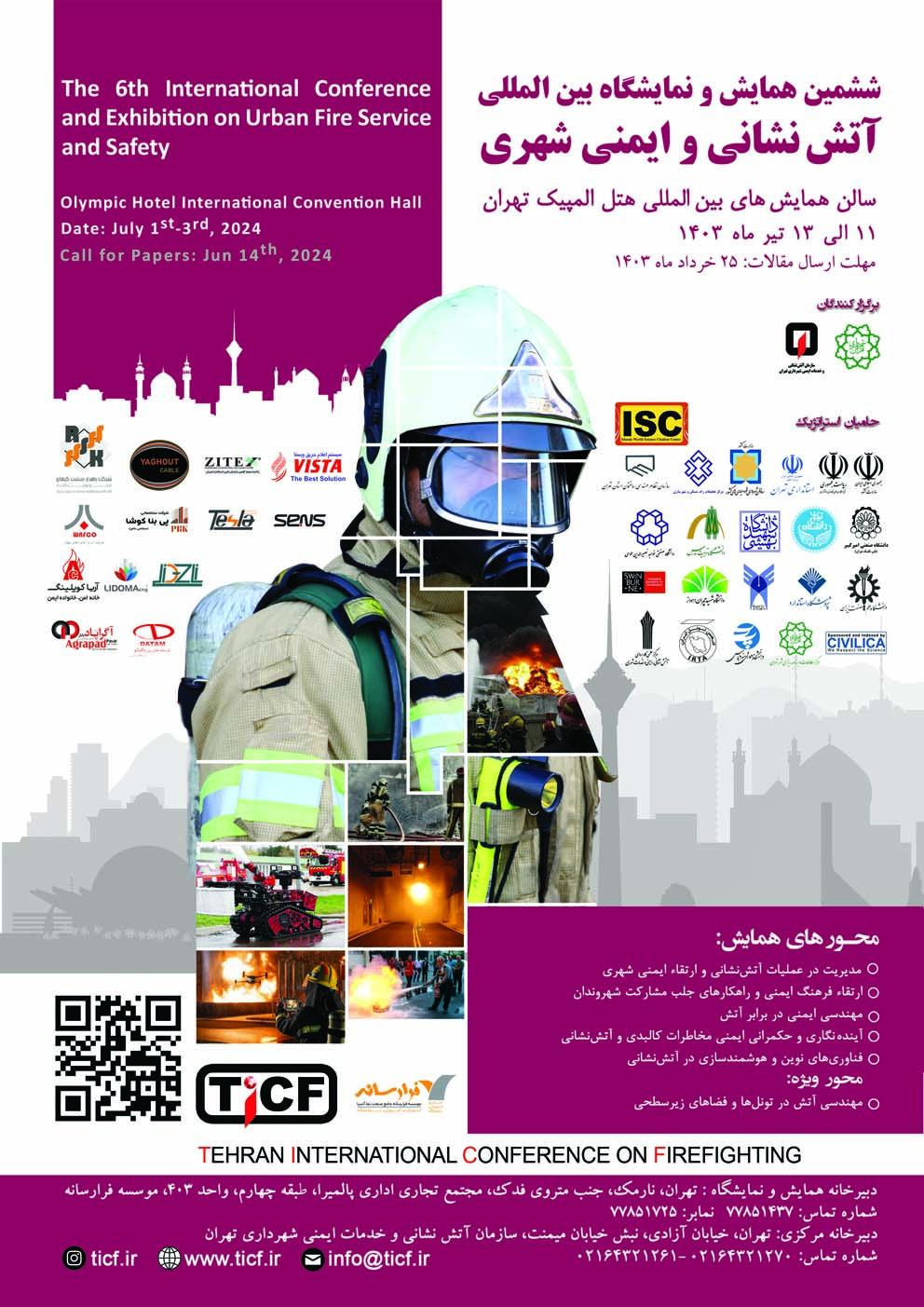 پس از برگزاری موفقیت آمیز پنجمین دوره پیشن همایش آتش نشانی و ایمنی شهری و نظر به اهمیت روز افزون ارتقا سطح ایمنی در مناطق شهری و صنعتی بر آن شدیم تا در سال 1403 نیز این همایش را با همفکری و یاری دست اندرکاران حوزه ایمنی در بخش دانشگاهی و مدیریت شهری و در ابعاد بین المللی برگزار کنیم. در این راستا، چهار محور 1- مدیریت در عملیات آتشنشانی و ارتقاء ایمنی شهری. 2- ارتقاء فرهنگ ایمنی و راهکارهای جلب مشارکت شهروندان. 3- مهندسی ایمنی در برابر آتش. 4- آینده نگاری و حکمرانی ایمنی مخاطرات کالبدی و آتشنشانی. 5- فناوریهای نوین و هوشمند سازی در آتشنشانی بعنوان بخش های اصلی این همایش را تشکیل می دهند.